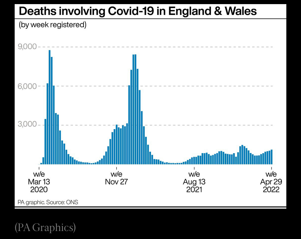 Deaths involving Covid-19 in England & Wales Credit: PA Graphics
