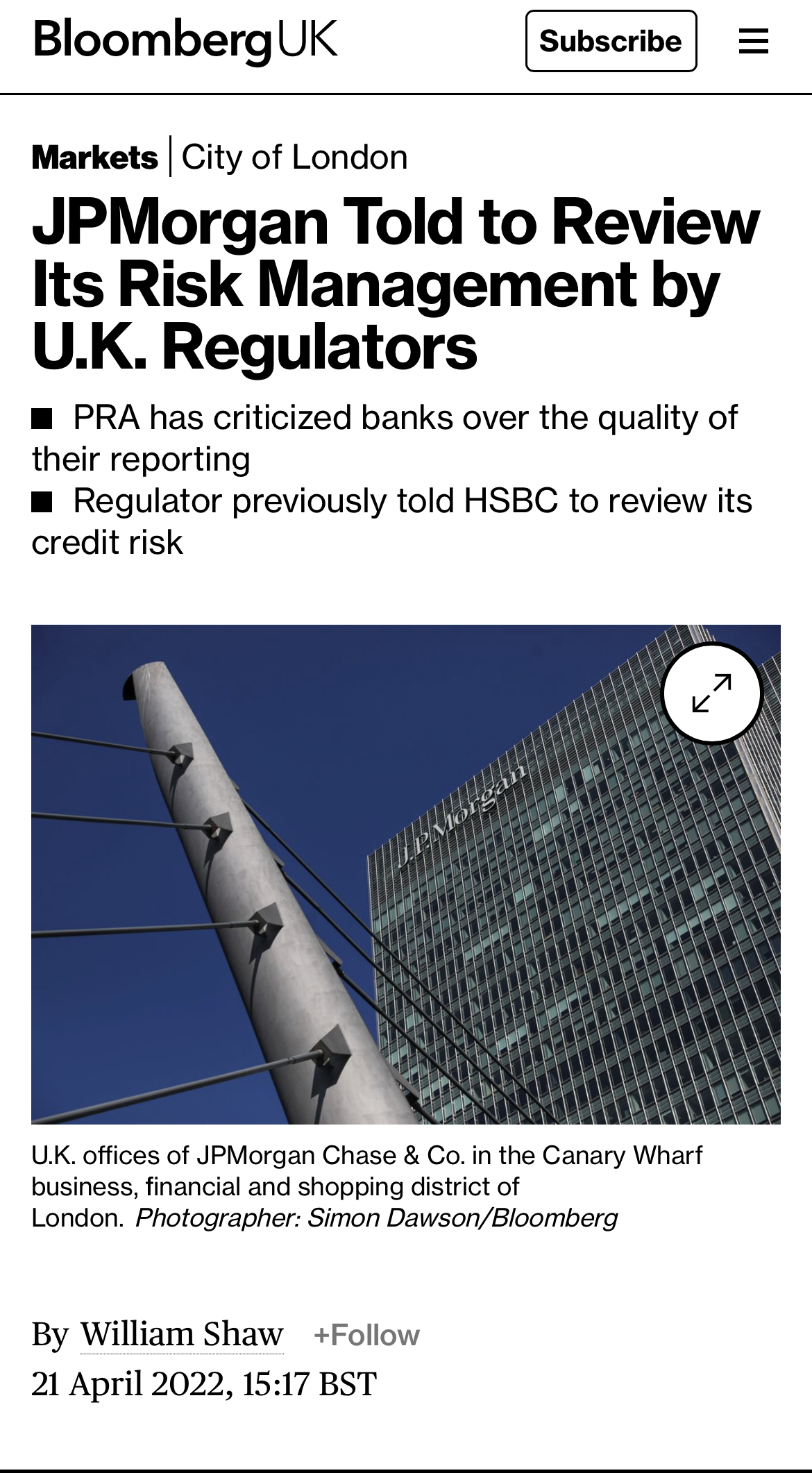 UK regulator has instructed JP Morgan to review its approach to risk management amid a crackdown on reporting procedures of banks. The Prudential Regulation Authority (PRA) told JP Morgan to commission a section 166 review to analyse the accuracy of its reporting, inside sources told Bloomberg.