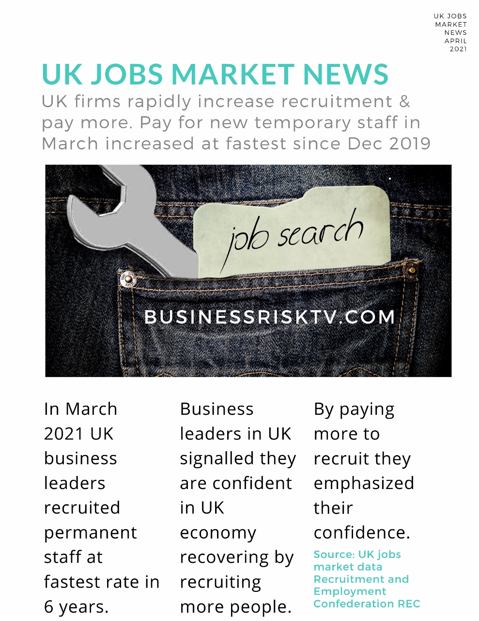 UK firms rapidly increase recruitment & pay more. Pay for new temporary staff in March increased at fastest since Dec 2019. In March 2021 UK business leaders recruited permanent staff at fastest rate in 6 years. Business leaders in UK signalled they are confident in UK economy recovering by recruiting more people. By paying more to recruit they emphasized their confidence.